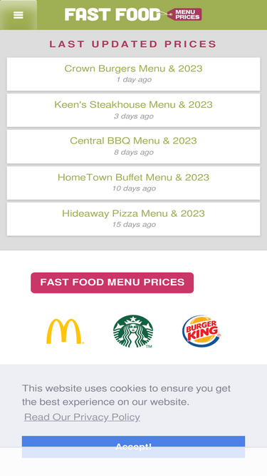 Fast Food Menu Of Fastfood Snacks And Meals. Cafe Restaurant Or Very well made.