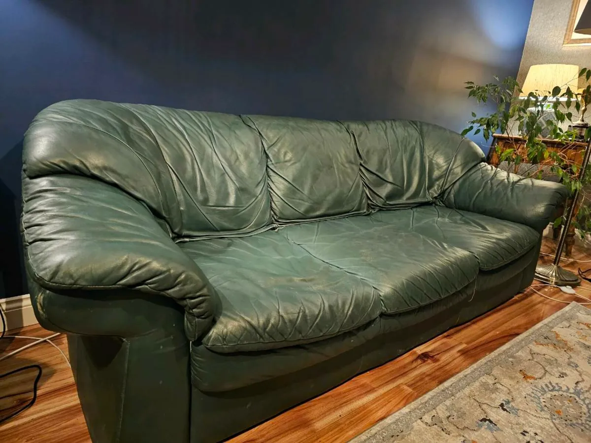 Green leather sofa and armchairs. for sale in Co. Dublin for 250 Very well made.