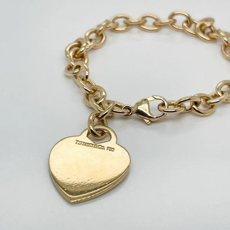 Tiffany and Co. 18 Karat Gold Dog Chain Link Bracelet Heart Very well made.